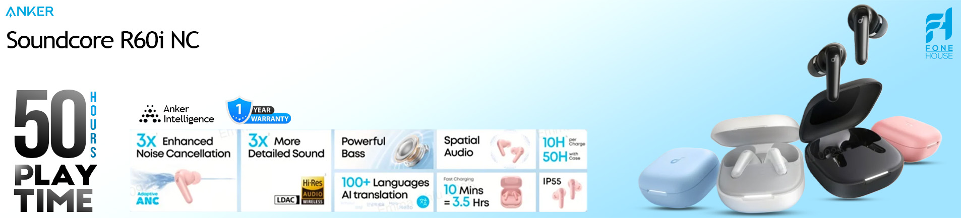 Anker Soundcore R50i NC True Wireless Earbuds โ 45 H Playtime & Best Hybrid ANC